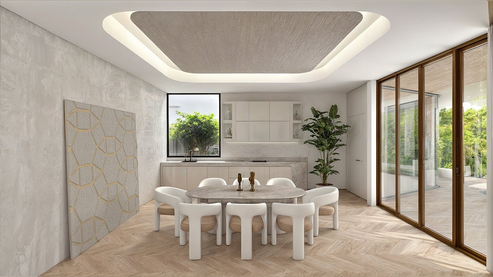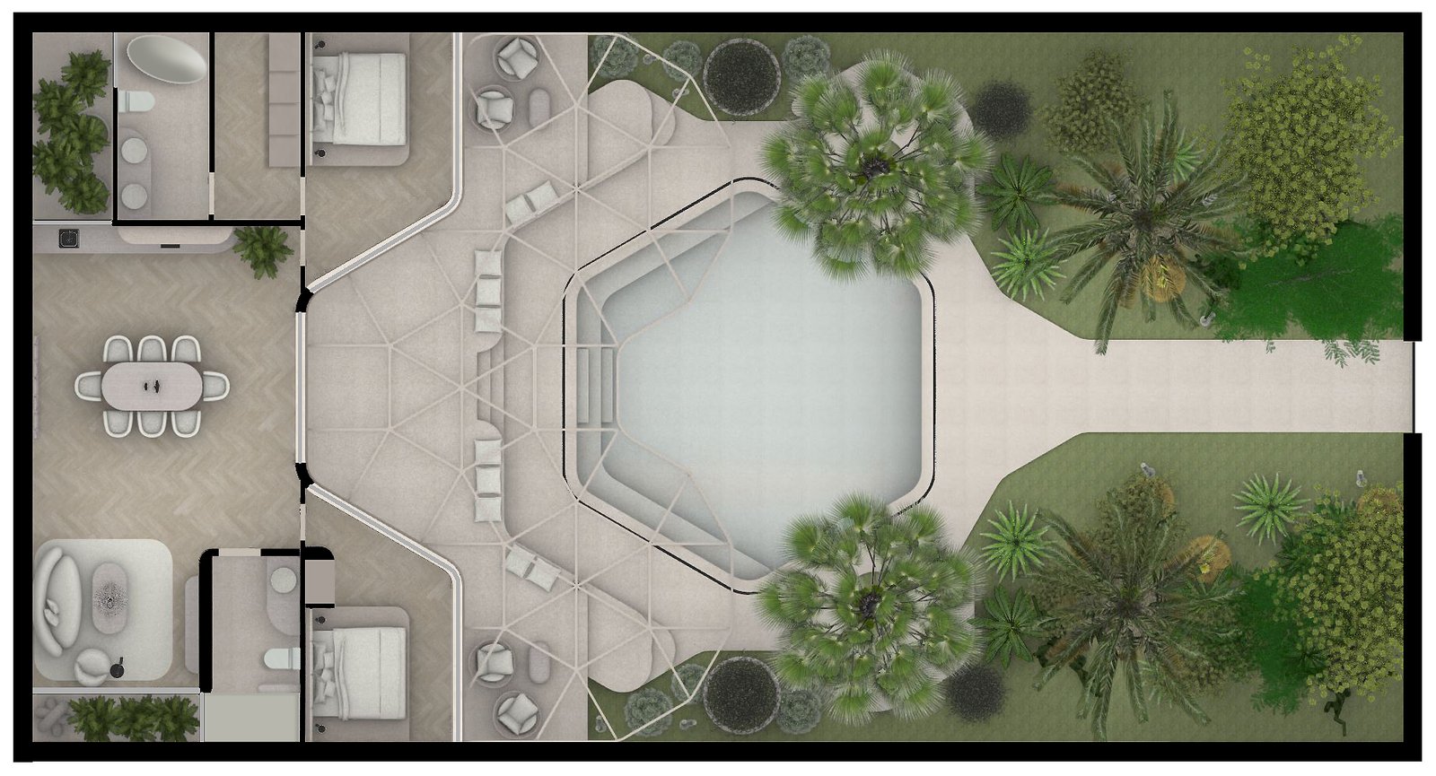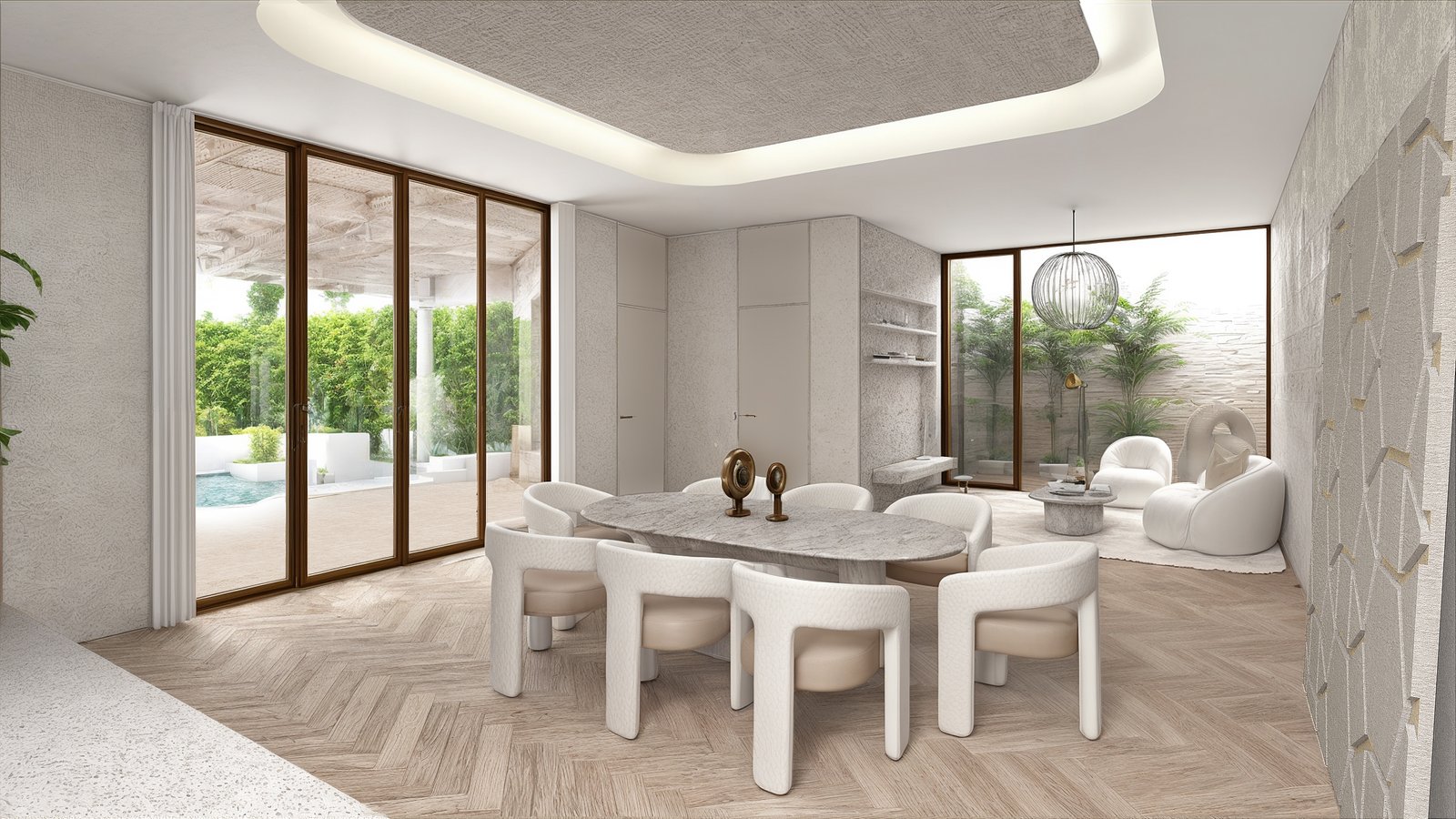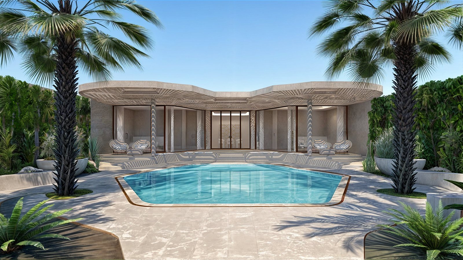 Este es un proyecto de renovación que consiste en convertir una propiedad obsoloeta en un ícono de Airbnb cerca del sitio arqueológico de Diriyah, Riad. La estructura existente se amplía parcialmente generando espacio para dos dormitorios. La geometría del Proyecto intenta conectar con la cultura local al tiempo que proporciona una composición moderna y relajante. La selección de materiales se mantiene mayoritariamente monocromática y tranquila, dando protagonismo al exuberante jardín. Paz y tradición. Lujo y privacidad